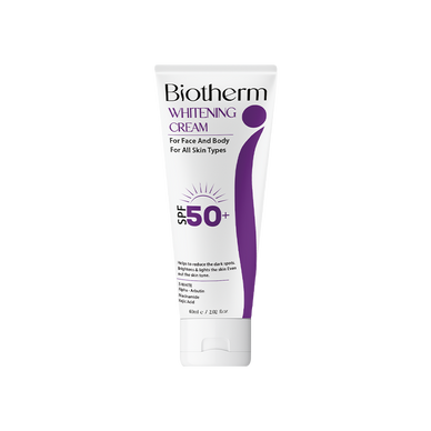 Lightweight cream combining effective whitening with SPF 50 sun protection, leaving skin radiant and even-toned.